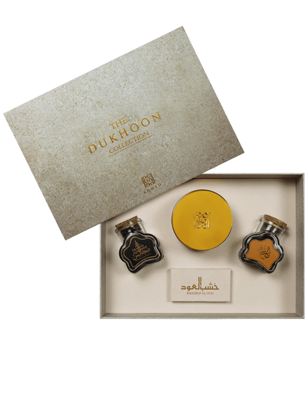 Oud Ma’attar Majalis, Mariya Oud Mubakhar 36 Grams, Bakhoor Ahmed 20 Tabs and Khashab Al Oud.